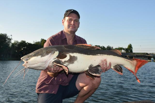 | Yohan de Nazareth was another first time angler in December catching an awesome albino pacu, as well as the 'Friendly Mekong', numerous Asian redtail and striped catfish. |