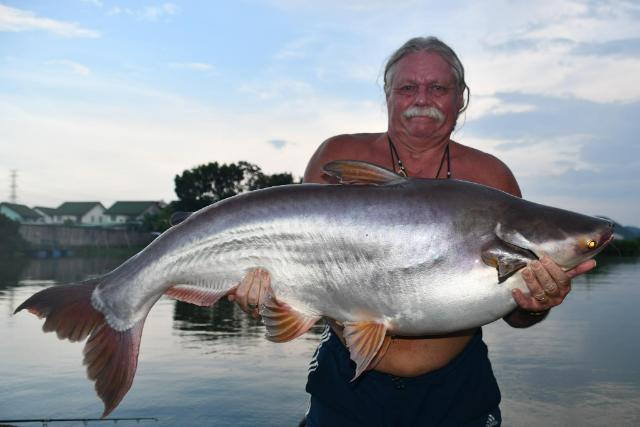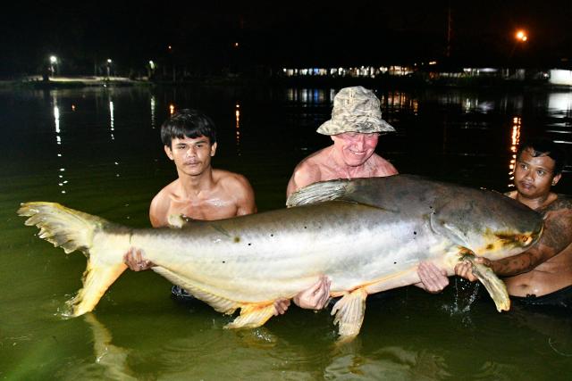 | Tim and Benji had a successful three day session in December catching a rarely caught wallago leeri, as well as some impressive Siamese carp and Mekong catfish. They also landed numerous giant featherback, as well as Asian redtail, alligator gar, chao phraya catfish, and striped catfish |