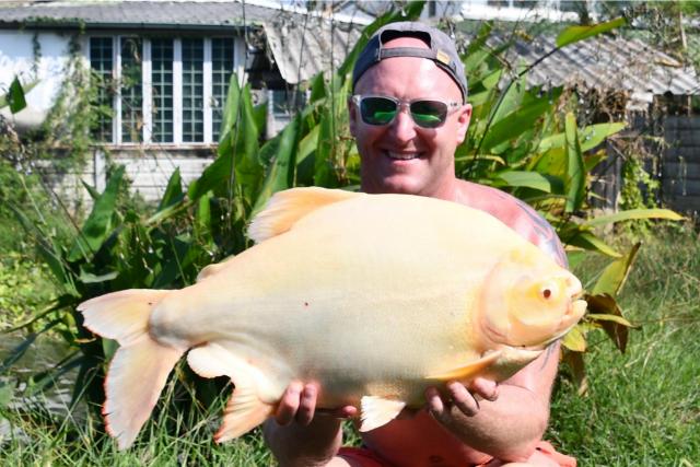| Ben Hiscox returned in December and had an awesome session topped off by a colossal Chao Phraya catfish as well as both wallago attu and wallago leeri. He also landed arapaima, African walking catfish, albino Chao Phraya catfish, albino pacu, Mekong catfish, giant snakehead, golden snakehead, Siamese carp, Amazon redtail, alligator gar and more... |