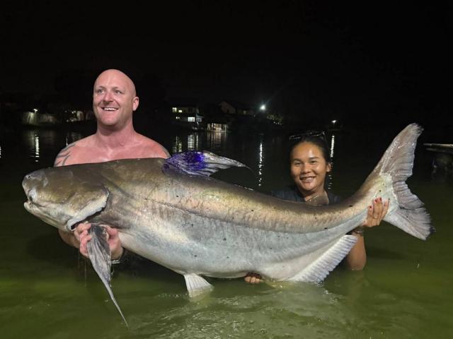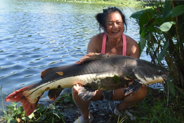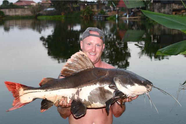 | Sarah and Andy Blackburn returned for their annual visit in December landing Mekong catfish, Siamese carp, Chao Phraya catfish, giant snakehead, striped catfish, as well as both Amazon and Asian redtail. |