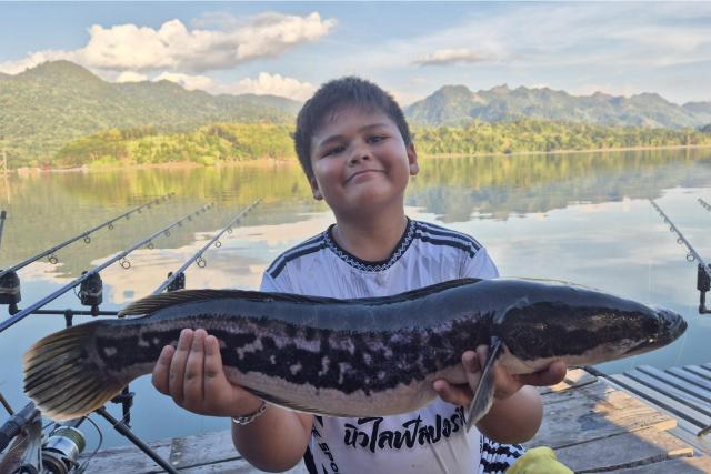 | Benji & Tim fished the wilds of the scenic Khao Laem Dam and had an awesome time catching wallago attu, giant snakehead, tinfoil barb and jungle perch. |