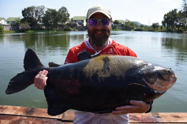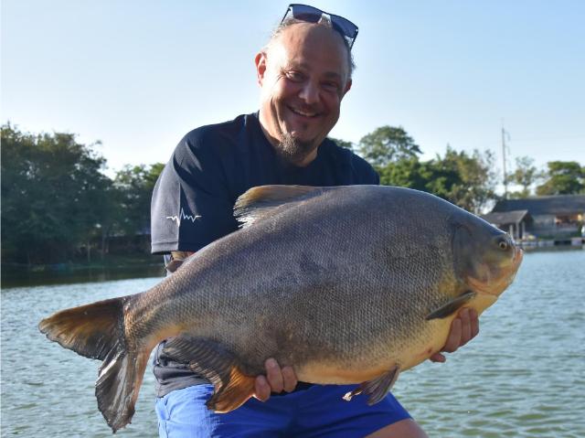 | Lee Jacobs returned in December catching big Siamese carp, Mekong catfish and tambaqui, as well as Chao Phraya catfish, alligator gar, catfish shark, and both Amazon and Asian redtail. |