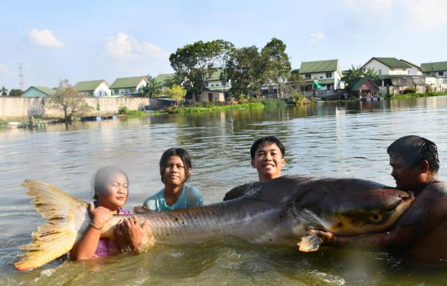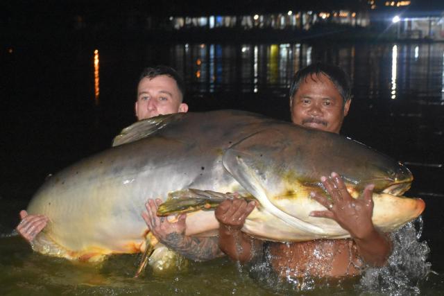 | Some of our long time customers from Germany finally returned for the first time since the pandemic and it was not long before they become reacquainted with the 'Friendly Mekong'. They also caught other Mekong catfish, as well as giant featherback, both Amazon and Asian redtail and more... |