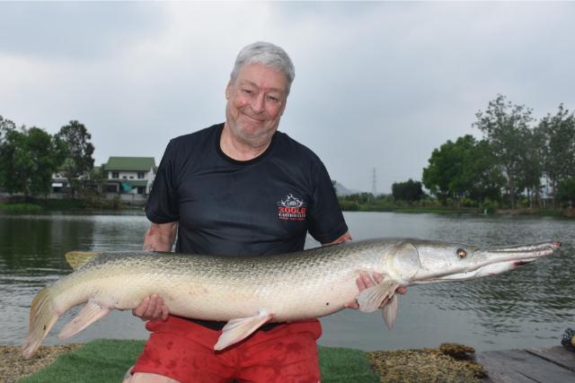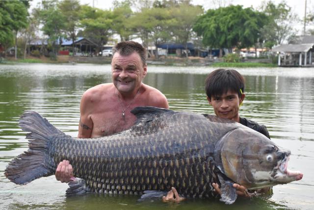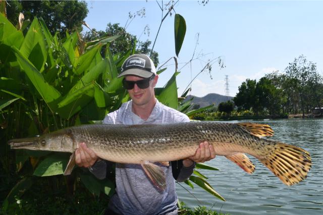 | It was Mekong catfish galore for Palm Tree regular Mark Basham in March, the catch included both the 'Big White' and the 'Friendly One'. He also landed alligator gar, wels catfish, wallago leeri, Siamese carp, striped catfish, and Asian redtail. |