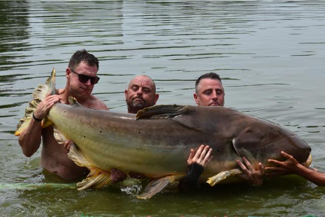 | Terry Aldridge visited us for the first time in May catching some monster Mekong catfish to 400lb+ and some awesome alligator gar. He also landed Siamese carp, Chao Phraya catfish, wels catfish, striped catfish, and both Amazon and Asian redtai |