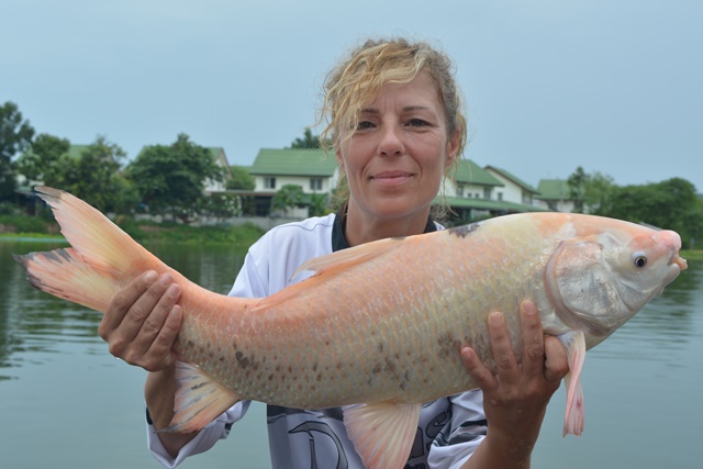 | What a truly awesome session Marian Garpez had catching an enormous number of fish of a great variety of species in her first week of fishing at Palm Tree Lagoon. These included one of the biggest catla carp caught for years, as well as a huge alligator gar and Siamese carp to over the 100lb mark, a very impressive Chinese silver carp as well as wallago attu and black shark minnow. She also caught Mekong catfish, big-Y catfish, arapaima, yellow catfish, striped catfish, Juliens golden price carp, clown featherback, rohu, Chinese grass carp, chao phraya catfish, vundu catfish, as well as numerous Thai and Amazon redtails. |