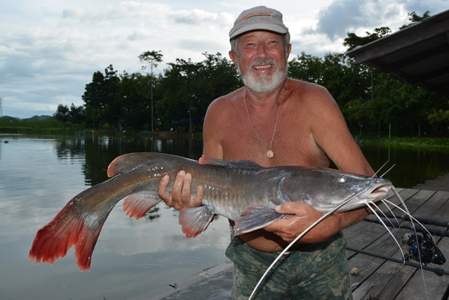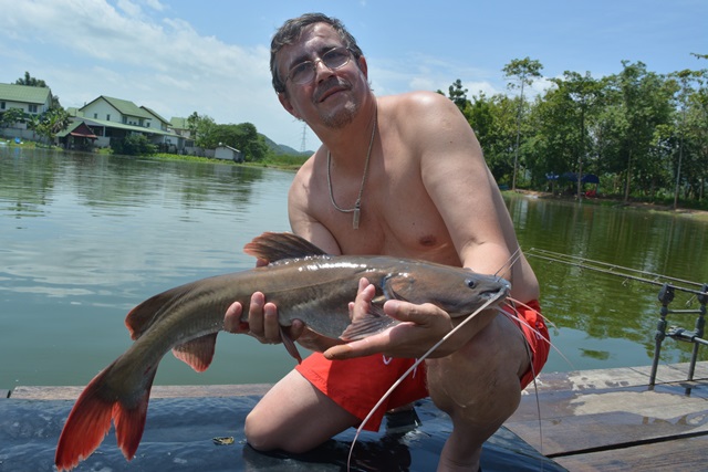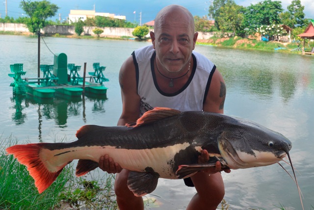 | John from Shooters Bar in Pattaya was also back during the month catching a number of different species such as a rare vulture catfish, leopard catfish, rohu, Siamese carp, striped catfish, catfish shark, as well as both Amazon and Thai redtails. |