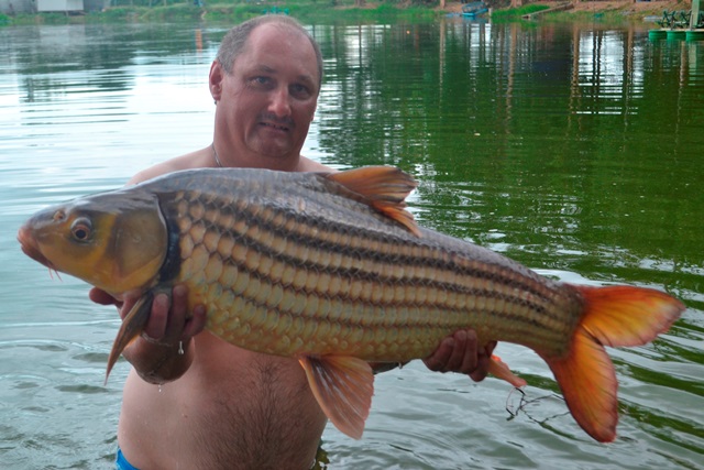 | Dutch angler Ronald Megens was very impressed with his first session at Palm Tree vowing to come back next year with some friends. The pick of his many catches was an awesome Salween rita, but he also caught some big Thai and Amazon redtails, as well as Siamese carp, striped catfish and catfish shark. |