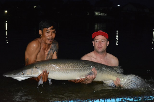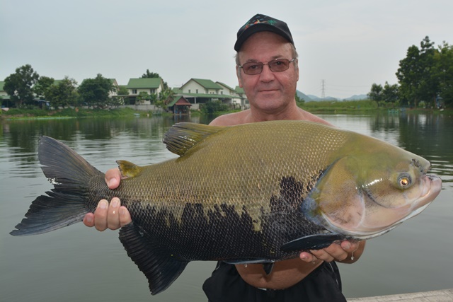 | The Punch formerly known as John Harvey also made the trip up from Pattaya taking a few days off from running Castaway Fishing Park and catching a number of his favourite species rohu as well as a monster pb alligator gar and a huge mollycot. He also caught a new species for him in the shape of a lake record elephant ear gourami, as well as wallago attu, a pb tambaqui, catfish shark, arapaima, striped catfish and both Asian and Amazon redtail. |