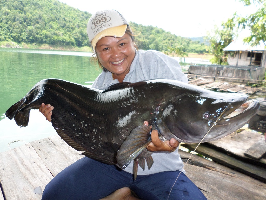 Feel free to browse through the photos of angling customers with Wallago Leeri / Great Black Sheatfish caught on fishing adventure holidays in the Kingdom of Siam at Khao Laem Dam Kanchanaburi Thailand below. You can click on any gallery photo / image thumbnail to expand it.
